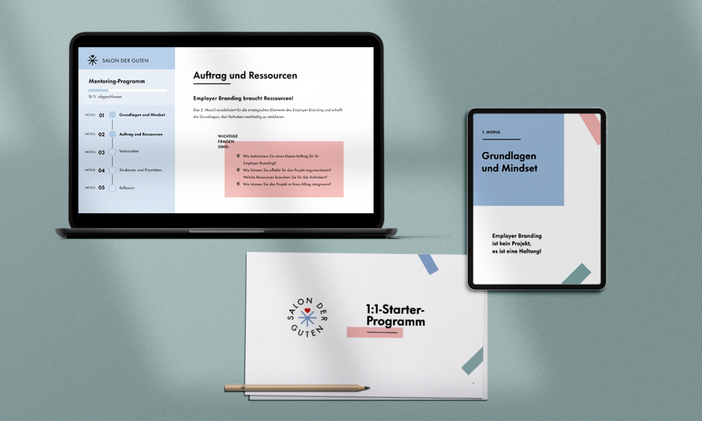 Im 1:1-Starter-Programm begleite ich Sie als Sparringspartnerin dabei, sich einen ersten Überblick zu verschaffen, die Relevanz des Themas intern sichtbar zu machen und sich Rückendeckung und Ressourcen von Geschäftsführung und anderen Verbündeten einzuholen. Ich teile mein Wissen mit Ihnen über eine Lernplattform und unterstütze Sie in persönlichen Terminen. So lernen Sie das Handwerkszeug, um Ihre Organisation als attraktive Arbeitgebermarke zu positionieren. Sie stecken bereits mitten in einem Employer Branding-Prozess und wünschen sich ein regelmäßiges Sparring? Dann empfehle ich Ihnen das 1:1-Aufbau-Programm.